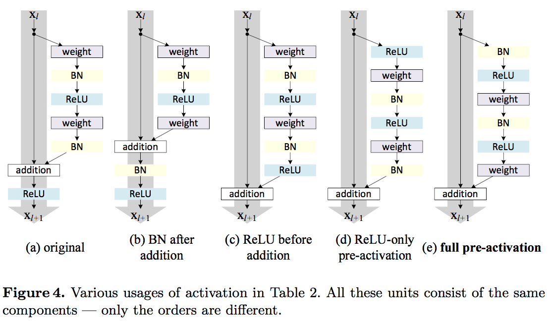 다만 Conv Layer의 뒤에 Batch Normalization(이하 BN)을 취해주는 방법을 사용했다. 그리고 BN과 Activation Layer의 순서를 다양한 방법으로 변경하면서 퍼포먼스를 실험해 보았다.