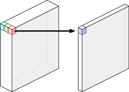 Pointwise Convolution은 1x1크기의 Convolution Filter가 입력된 채널의 갯수만큼 존재한다. 간단하게는 모든 채널에 대해서 더하기(Add)를 해주는 개념이다. 무엇보다 Pointwise Convolution의 주된 목적은 Output채널의 수를 늘리거나(Expand) 줄이는(Squeeze)것에 있다. 즉, 쉽게말해서 1x1 Convolution을 Pointwise Convolution이라고 한다.