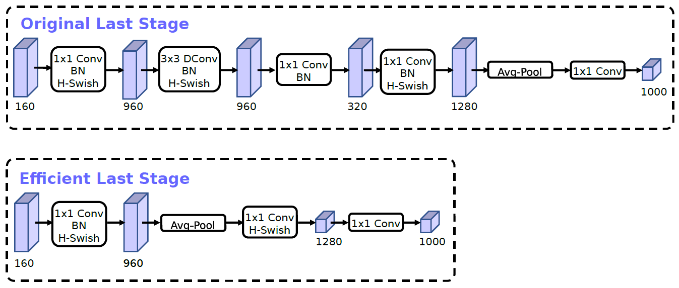 NAS를 통해 찾아낸 신경망의 디자인을 살펴보니 마지막 Block이 뚱뚱하다는것을 발견하고 아래 그림과 같이 해당 부분을 사람이 직접 Redesign 하였다. 해당 작업을 통해 7ms의 속도 개선과 30M의 연산량 절감을 이뤄냈다고 한다.