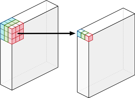 Depthwise Convolution은 Feature Map을 채널별로 쪼개서 따로따로 Convolution Operation을 진행하는 형태이다. 위 그림에서는 입력 채널이 3개이므로 3x3크기의 Convolution Filter가 3개 존재한다. 각 Filter는 채널에 1:1 대응이되어 Convolution Operation을 진행하게된다. 이것을 Depthwise Convolution이라고 부른다.