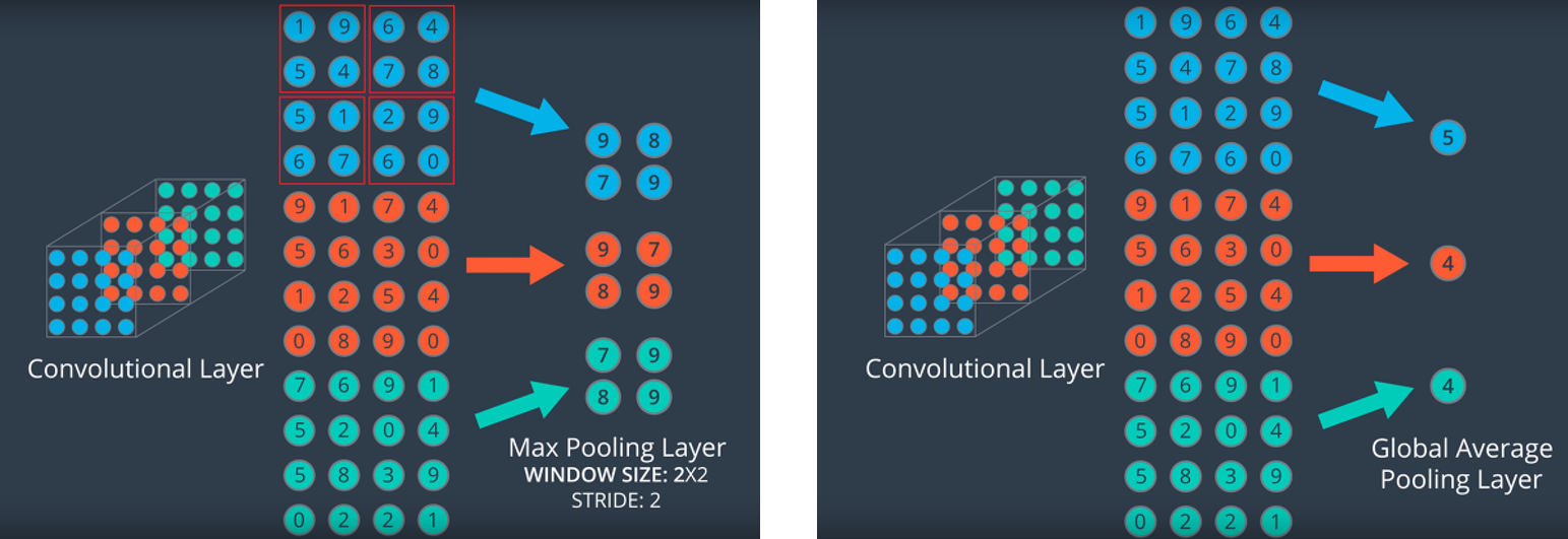 일반적으로 신경망의 맨 마지막 Feature Map을 Pooling할때 한번 사용한다. 이전 Layer에서 획득한 Feature Map에서 각각의 Channel에 대하여 평균을 낸 값을 하나씩 뽑아내는 것이다.